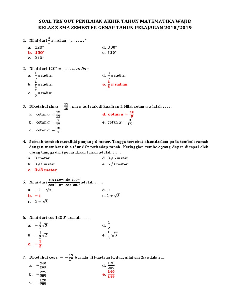 Contoh soal fungsi komposisi | matematika kelas 102 min read. Documents similar to latihan soal uas matematika kelas 10 semester 1.pdf. Materi matematika,,, adalah pelejaran yang dapat mencerdaskan daya fikir dengan perkembangan otak sehingga mempelajari nya juga perhitungan kini kami memberikan contoh soal matematika kelas 10 sma/ma/stm dan smk , semester 1 dan 2, beserta jawabannya, tingkat sekolah menengah atas 1, 2, 3 sma/ma/stm dan smk. Latihan soal matriks sma ujian dan ulangan harian beserta pembahasannya matriks menjadi salah satu materi dasar matematika yang bisa kalian temukan di jenjang smasmk. Cakupan penilaian meliputi seluruh indikator yang merepresentasikan kd pada semester genap. Contoh soal fungsi komposisi | matematika kelas 10. Soal ulangan harian logaritma kelas 10. Oleh wardrobe 01 jun, 2020. Download soal latihan ukk matematika kelas 10. Contoh soal trigonometri | matematika kelas 10. Soal pas matematika peminatan kelas 10 x kurikulum 2013 kunci jawaban dan pembahasannya oktober 21 2020 november 23 2020 raden mas koentjoro 0 komentar berikut ini adalah soal latihan dalam menghadapi penilaian akhir semester pas atau ulangan akhir semester uas mata pelajaran matematika peminatan untuk kelas 10 x smama smkmak. Selengkapnya, inilah soal pas / uas sma/ma matematika wajib kelas 10 untuk tahun pelajaran 2020/2021 yang dapat anda download pada link di bawah ini: Soal pat matematika kelas 10 kurikulum 2013.